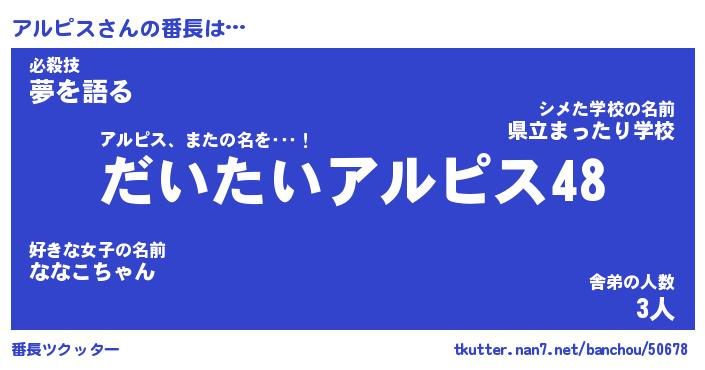 | 男性向けラノベタイトル風あだ名 | 『アルピスの憂鬱』 |