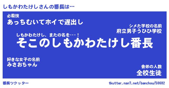 | ヒーロー風カッコイイあだ名 | 『スーパーシモカワタケシ』 |