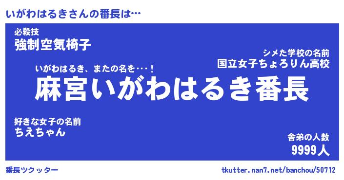 | 胡散臭い通販商品みたいなあだ名 | 『モテモテ間違いなし霊験あらたかなお札…その名も「いがわはるき」』 |