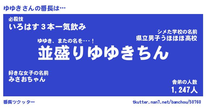 | ヘコむあだ名 | 『ゆゆふぇ~』『牛乳』『ゆゆ太郎』 |