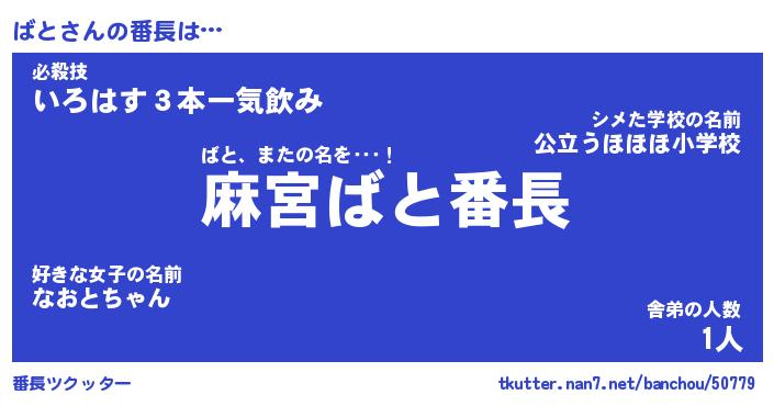 | ヘコむあだ名 | 『ばとにー』『牛乳』『ばとお』 |