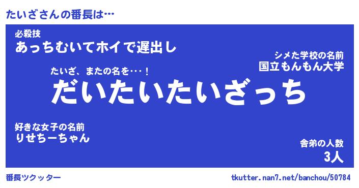 | ヒーロー風カッコイイあだ名 | 『スーパータイザ』『ウルトラたいざマン』 |