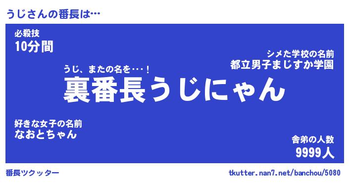 | ヒーロー風カッコイイあだ名 | 『スーパーウジ』『ウルトラうじマン』 |