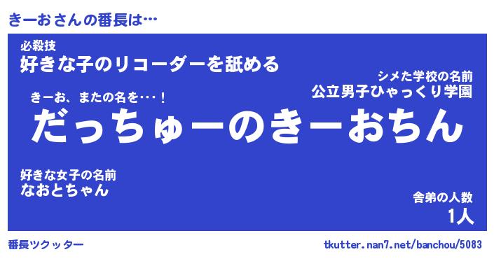 | 意味不明あだ名 | 『ペロリンきーお』『きーおフォーエバー』 |