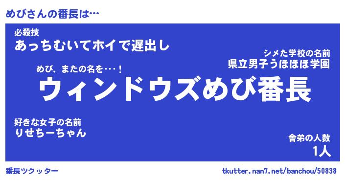 | ヒーロー風カッコイイあだ名 | 『スーパーメビ』『ウルトラめびマン』 |