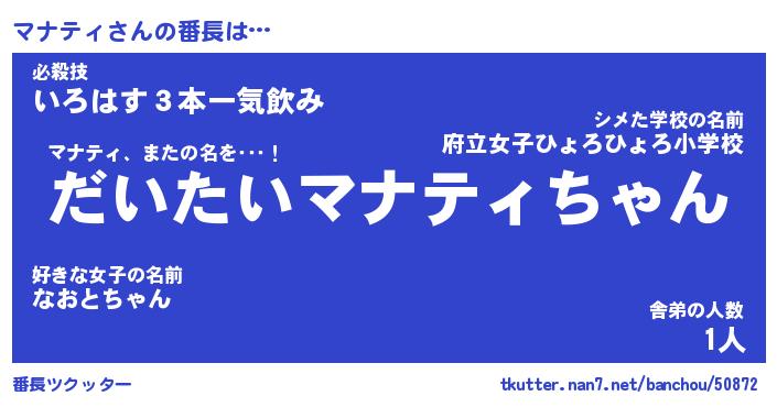 | 肩書あだ名 | 『マナティ店長』『マナティ国家主席』 |