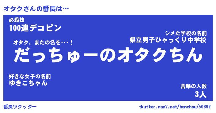 | ポケモン風あだ名 | 『オタチュウ』『オタクダネ』 |