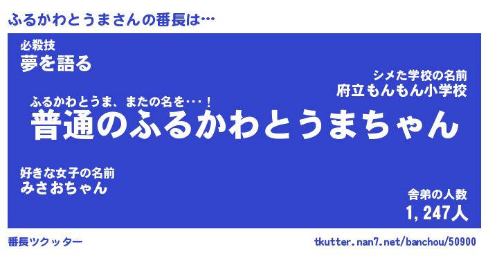 | ヒーロー風カッコイイあだ名 | 『スーパーフルカワトウマ』 |