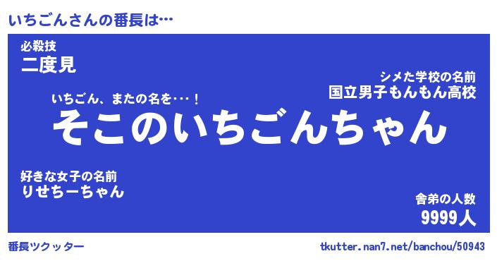 | 意味不明あだ名 | 『ペロリンいちごん』『永久保存いちごん』 |