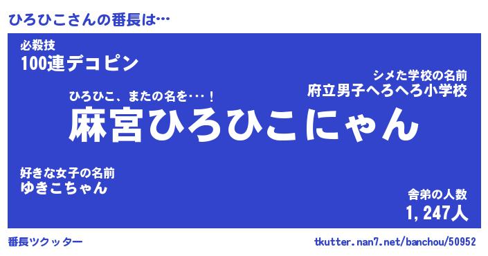 | 意味不明あだ名 | 『ペロリンひろひこ』『永久保存ひろひこ』 |
