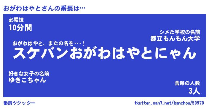 | ヒーロー風カッコイイあだ名 | 『スーパーオガワハヤト』『魔戒騎士オガ』 |