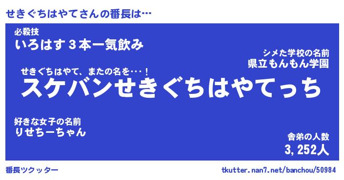 | ヒーロー風カッコイイあだ名 | 『スーパーセキグチハヤテ』 |