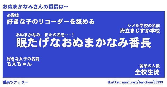| 伝説のあだ名 | 『封印されしスナイパーおぬまかなみ』 |