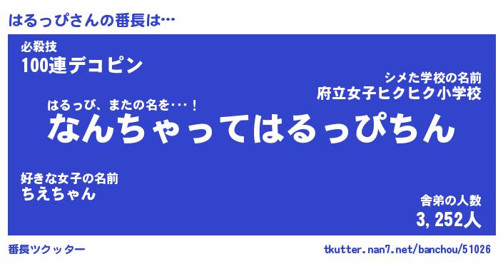 | ピコ太郎風あだ名 | 『ハコ四郎』『ピハ次郎』『ハル五郎』 |