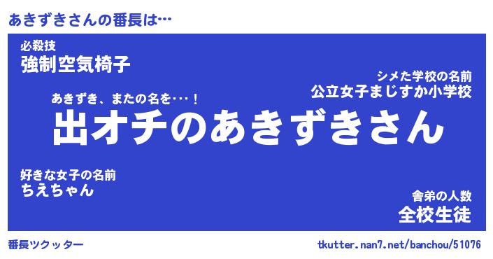 | 意味不明あだ名 | 『ペロリンあきずき』『永久保存あきずき』 |