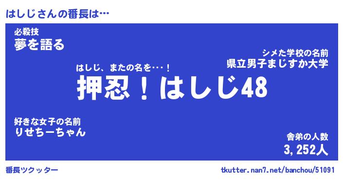 | 肩書あだ名 | 『はしじ店長』『はしじ大統領』 |