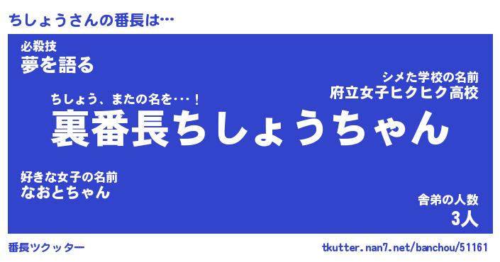 | 意味不明あだ名 | 『ペロリンちしょう』『永久保存ちしょう』 |