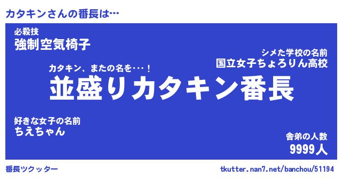 | ヒーロー風カッコイイあだ名 | 『スーパーカタキン』『天弓騎士カタ』 |