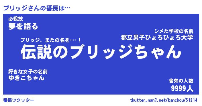 | ヒーロー風カッコイイあだ名 | 『スーパーブリッジ』『天弓騎士ブリ』 |