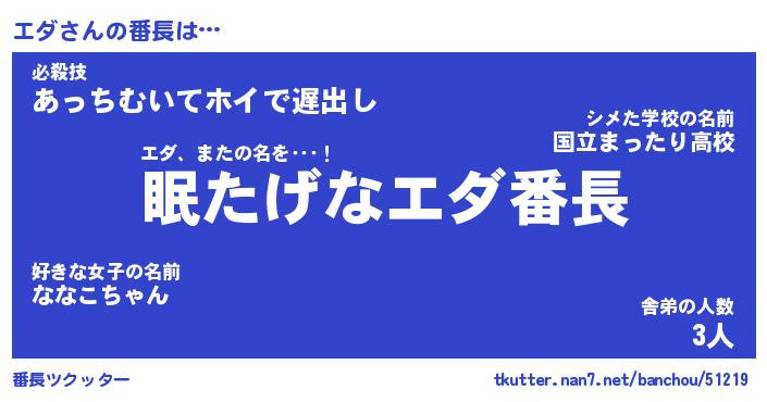 | 肩書あだ名 | 『エダ御曹司』『エダ大統領』 |