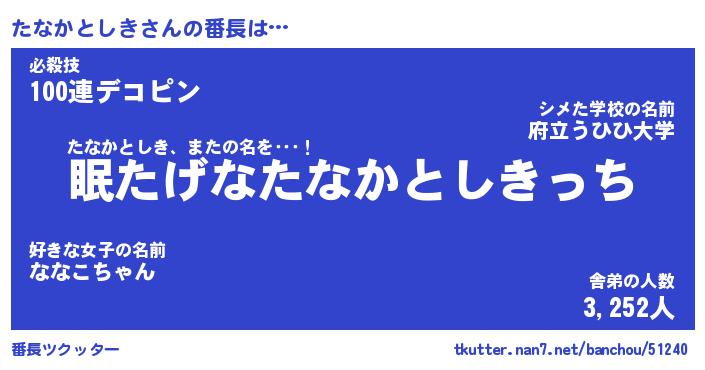 | ピコ太郎風あだ名 | 『タコ史郎』『ピタ次郎』『タナ十郎』 |