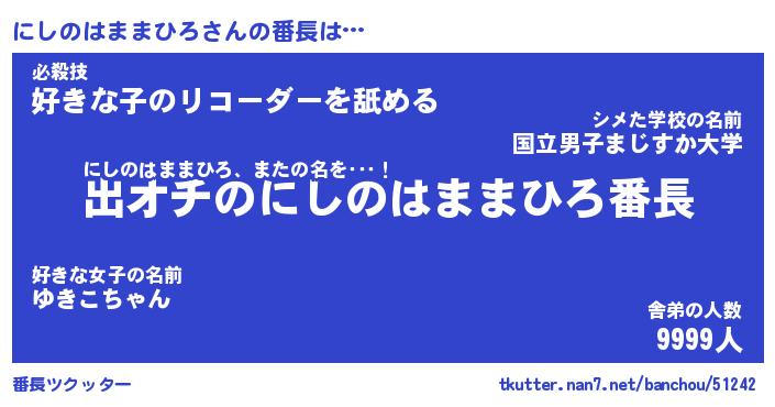 | ポケモン風あだ名 | 『ニシチュウ』『ニシノダネ』 |