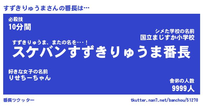 | ヒーロー風カッコイイあだ名 | 『スーパースズキリュウマ』 |