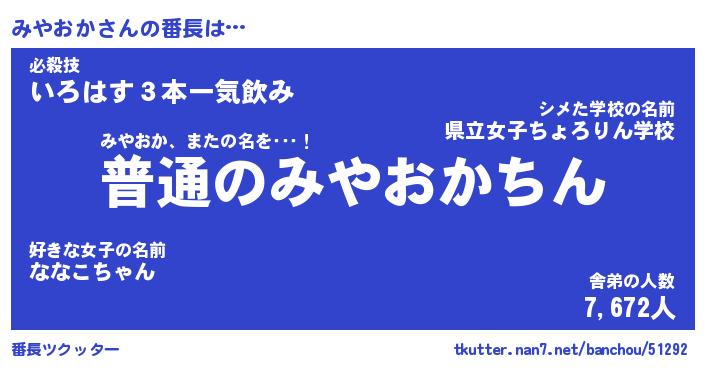 | ヘコむあだ名 | 『みやにゅー』『なまこ酢』 |