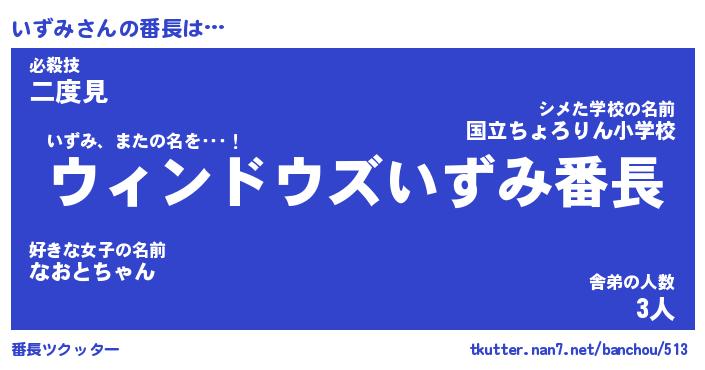 | 2回繰り返すあだ名 | 『いずいず』『いいずず』『おやおや』 |