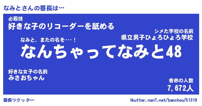 | ヘコむあだ名 | 『なみもー』『なまこ酢』『なみを』 |