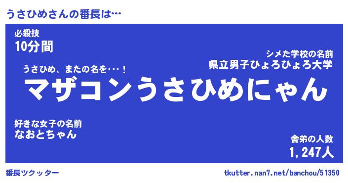 | ヒーロー風カッコイイあだ名 | 『スーパーウサヒメ』『銀牙騎士ウサ』 |