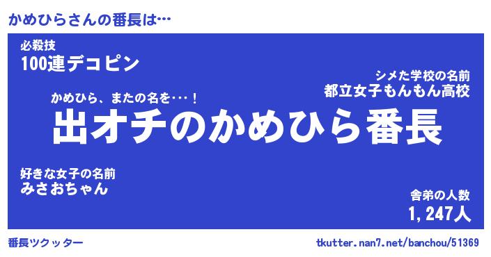 | 意味不明あだ名 | 『ペロリンかめひら』『永久保存かめひら』 |