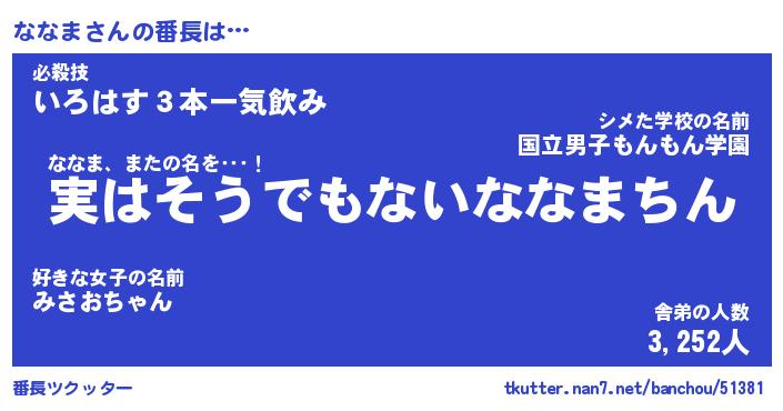 | 意味不明あだ名 | 『ペロリンななま』『ななまフォーエバー』 |