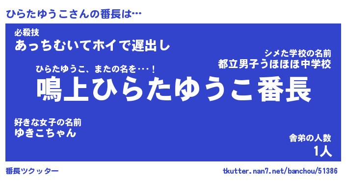 | ヒーロー風カッコイイあだ名 | 『スーパーヒラタユウコ』『黄金騎士ヒラ』 |