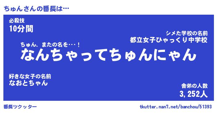 | ヘコむあだ名 | 『ちゅもー』『牛乳』『ちゅ太郎』 |