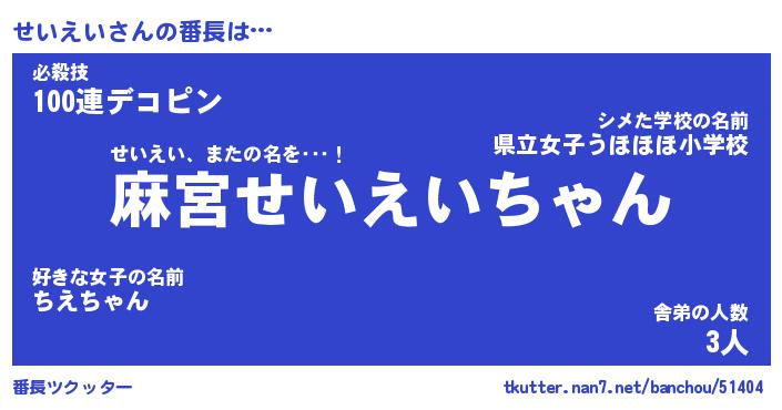 | 2回繰り返すあだ名 | 『せいせい』『せせいい』『ぬらぬら』 |
