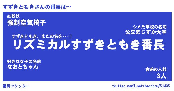 | ヒーロー風カッコイイあだ名 | 『スーパースズキトモキ』『暗黒騎士スズ』 |