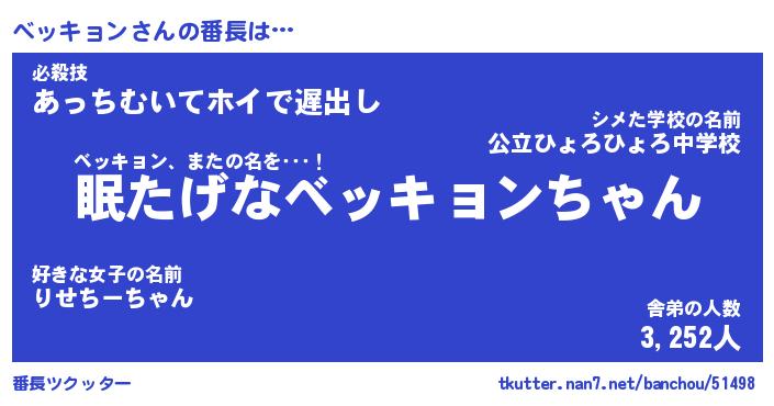 | ヒーロー風カッコイイあだ名 | 『スーパーベッキョン』『幻影騎士ベッ』 |