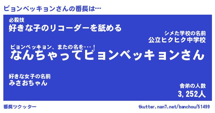 | 伝説のあだ名 | 『伝説のスナイパービョンベッキョン』 |