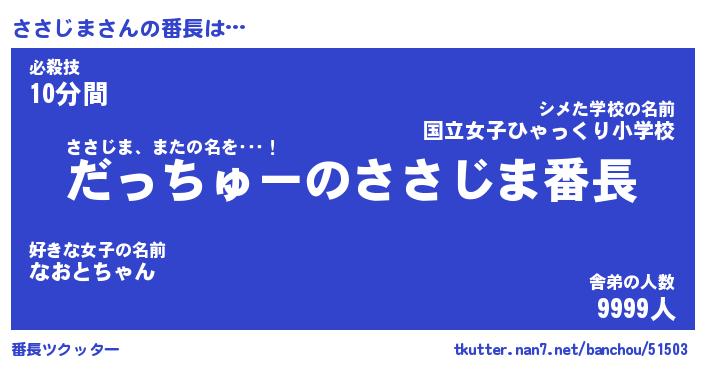 | 意味不明あだ名 | 『ペロリンささじま』『永久保存ささじま』 |
