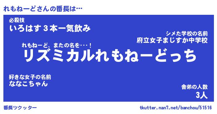 | 肩書あだ名 | 『れもねーど店長』『れもねーど大統領』 |