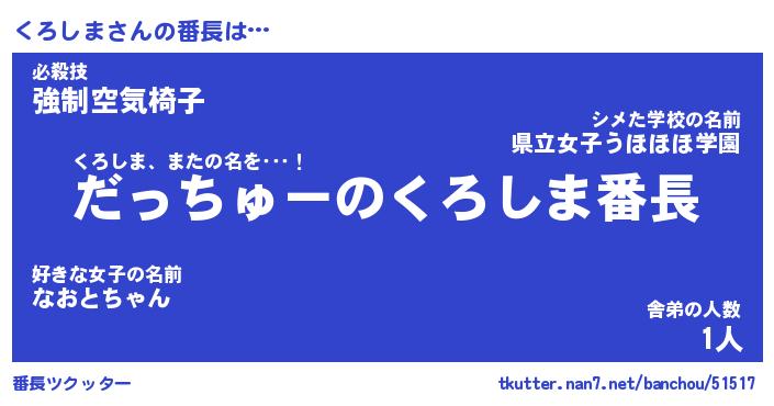 | 肩書あだ名 | 『くろしま店長』『くろしま総理大臣』 |