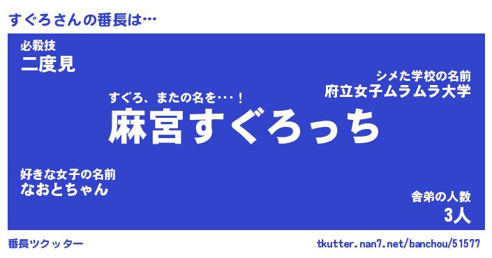 | ヘコむあだ名 | 『すぐもー』『酢こんぶ』『すぐ太郎』 |