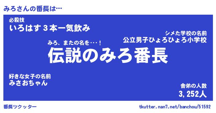 | 伝説のあだ名 | 『伝説のスナイパーみろ』 |