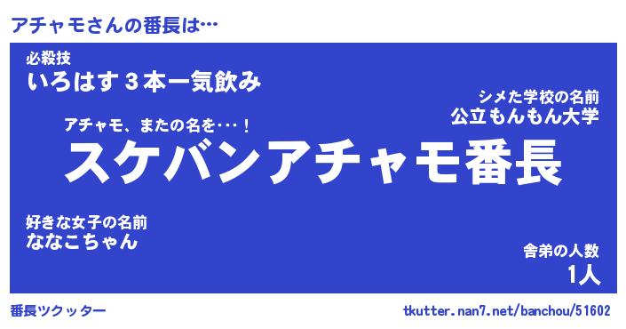 | 肩書あだ名 | 『アチャモ社長』『アチャモ大統領』 |