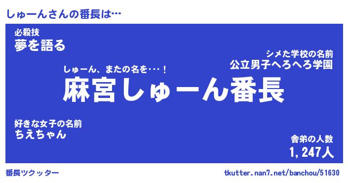 | ヒーロー風カッコイイあだ名 | 『スーパーシューン』『銀牙騎士シュ』 |