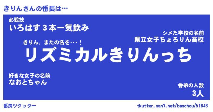 | ヘコむあだ名 | 『きりっふぃ~』『酢こんぶ』 |