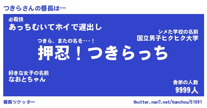 | 意味不明あだ名 | 『ペロリンつきら』『つきらフォーエバー』 |