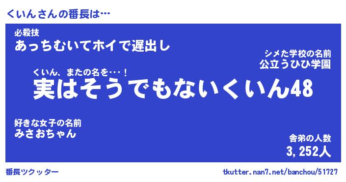 | ヘコむあだ名 | 『くいもー』『酢こんぶ』『くいっぺ』 |