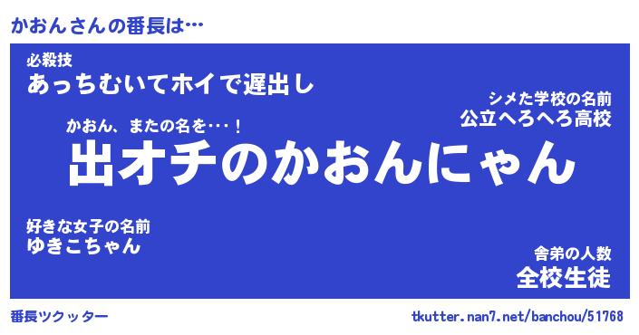 | ファンタジー風あだ名 | 『カオフェル』『エターナルカオンー』 |